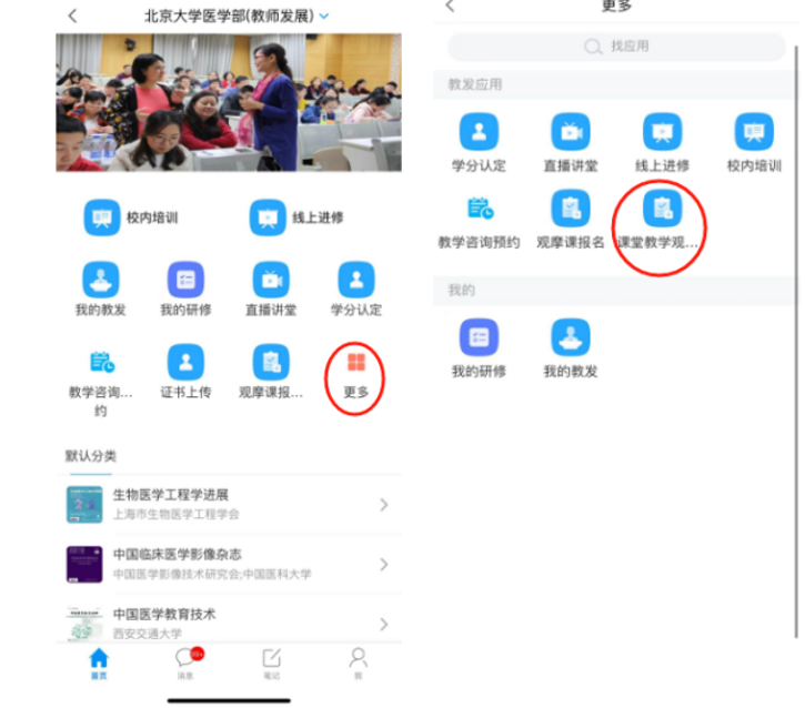 5.青教研修班学员观摩课程不需要签到,只需通过学习通APP-更多-课堂教学观摩记录表路径填写记录即可。