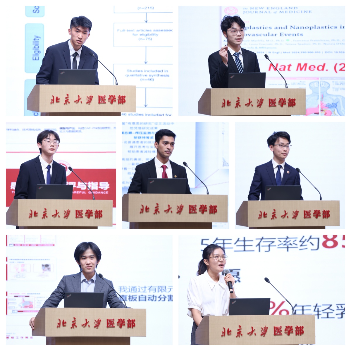 25位同学依次进行了答辩展示。同学们围绕研究背景、内容设计、创新点、预期成果及个人科研成长等方面进行了精彩汇报,内容涵盖肿瘤机制、人工智能辅助诊断、生殖健康、环境与健康、医学人文等多个前沿领域,充分展现了北大医学本科生扎实的科研素养、开阔的学术视野和昂扬的创新精神。