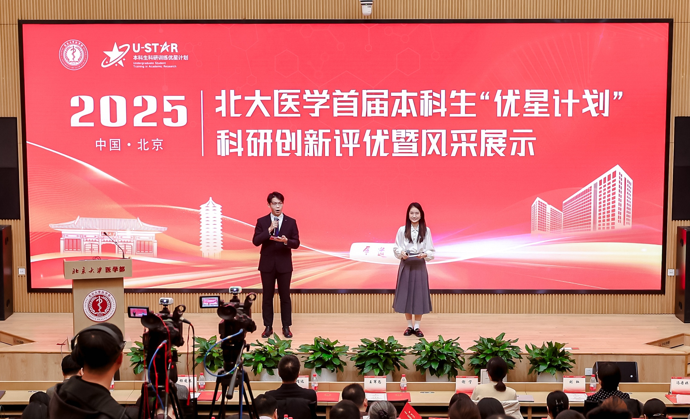 活动在主持人陈侃(医学人文学院2021级本科生)、何佳慕(中日友好临床医学院2022级本科生)的精彩开场中拉开帷幕。他们介绍了“优星计划”的设立背景与奖项设置。该计划于2025年9月正式推出,旨在建立一套完整的选拔、评价、展示与激励机制,设置“学术新启之星”(每年≤8人)、“学术优秀之星”(每年≤3人)、“学术卓越之星”(每年≤1人)三大主奖项,并设有学术潜力奖、最佳壁报奖、最具创意奖、最佳设计奖、最具人气奖等多个专项奖。