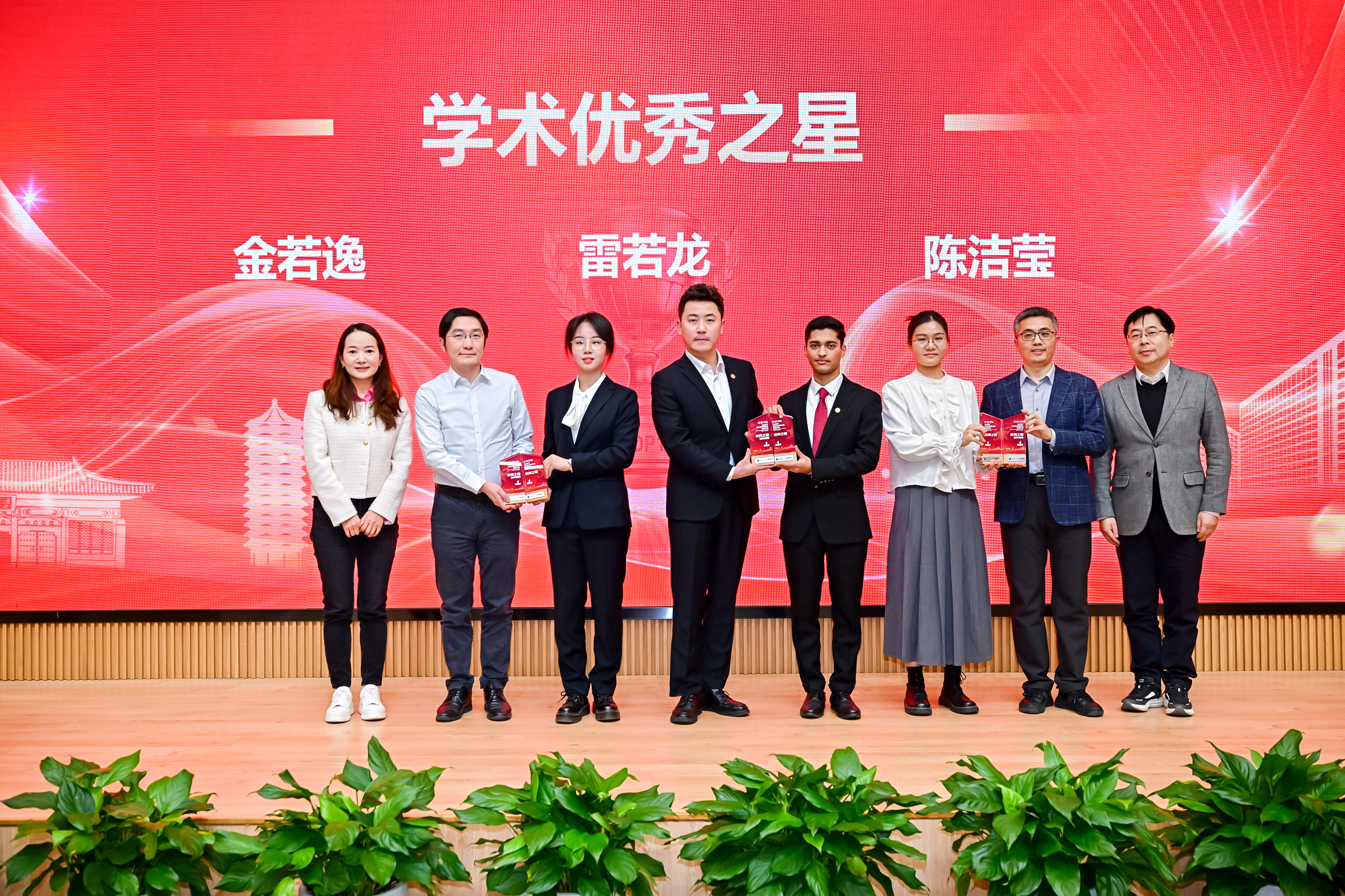 王军为为获得学术卓越之星的同学及其导师颁奖