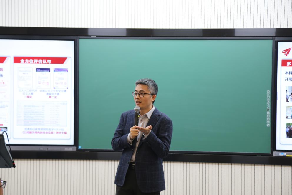 王胜锋研究员以“教研相长的课程设计”为题,从科研与教学的关系切入,探讨了如何通过课程设计实现教研互促。王老师分享了自身教学实践中迸发科研灵感的案例。例如,在讲授流行病学课程时,基于学生需求开发了“白话流行病学”“白话统计学”等课程,将知识融入故事,吸引学生参与。王胜锋强调,教师应善用课堂延伸,引导学生以实际问题为导向开展调研,产出论文与书稿,实现“养成式课堂”。他还分享了在本科生科研指导方面的具体经验与收获,并鼓励在场教师积极参与。