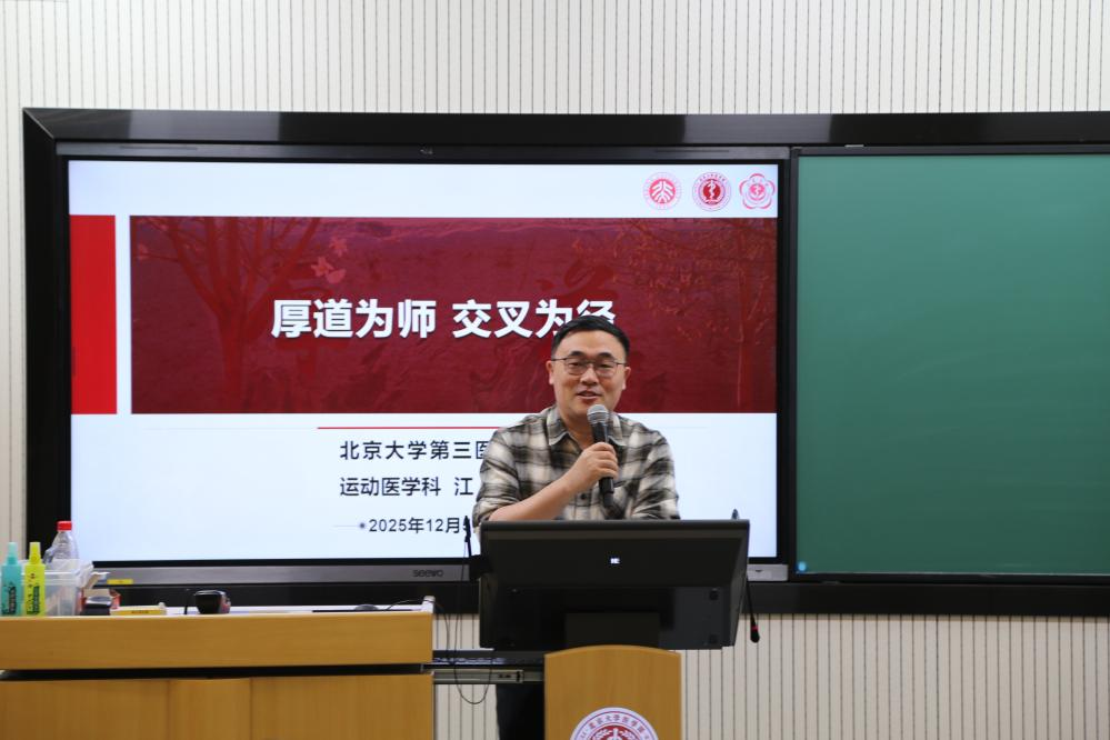 江东教授以“厚道为师,交叉为径”为主题,讲述了在运动医学领域的育人实践。江老师分享了“四C融合”的育人理念,即早临床(Clinic)、多交叉(Crossover)、怀大爱(Care)、善沟通(Communication),介绍了课程建设的探索实践。在人才培养方面,江东注重学生的全面发展,强调通过案例教学和科研训练提升学生的综合素养。在医教研工作平衡方面,江老师结合自身经验,分享了如何有效管理时间,高效完成工作任务等方式方法。
